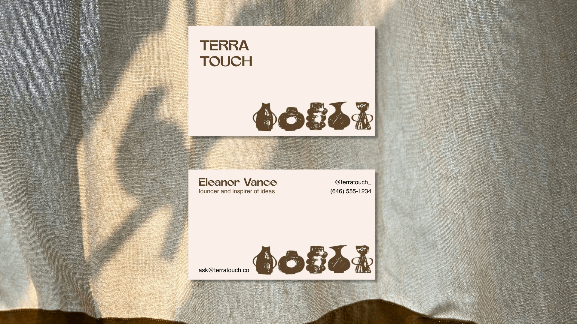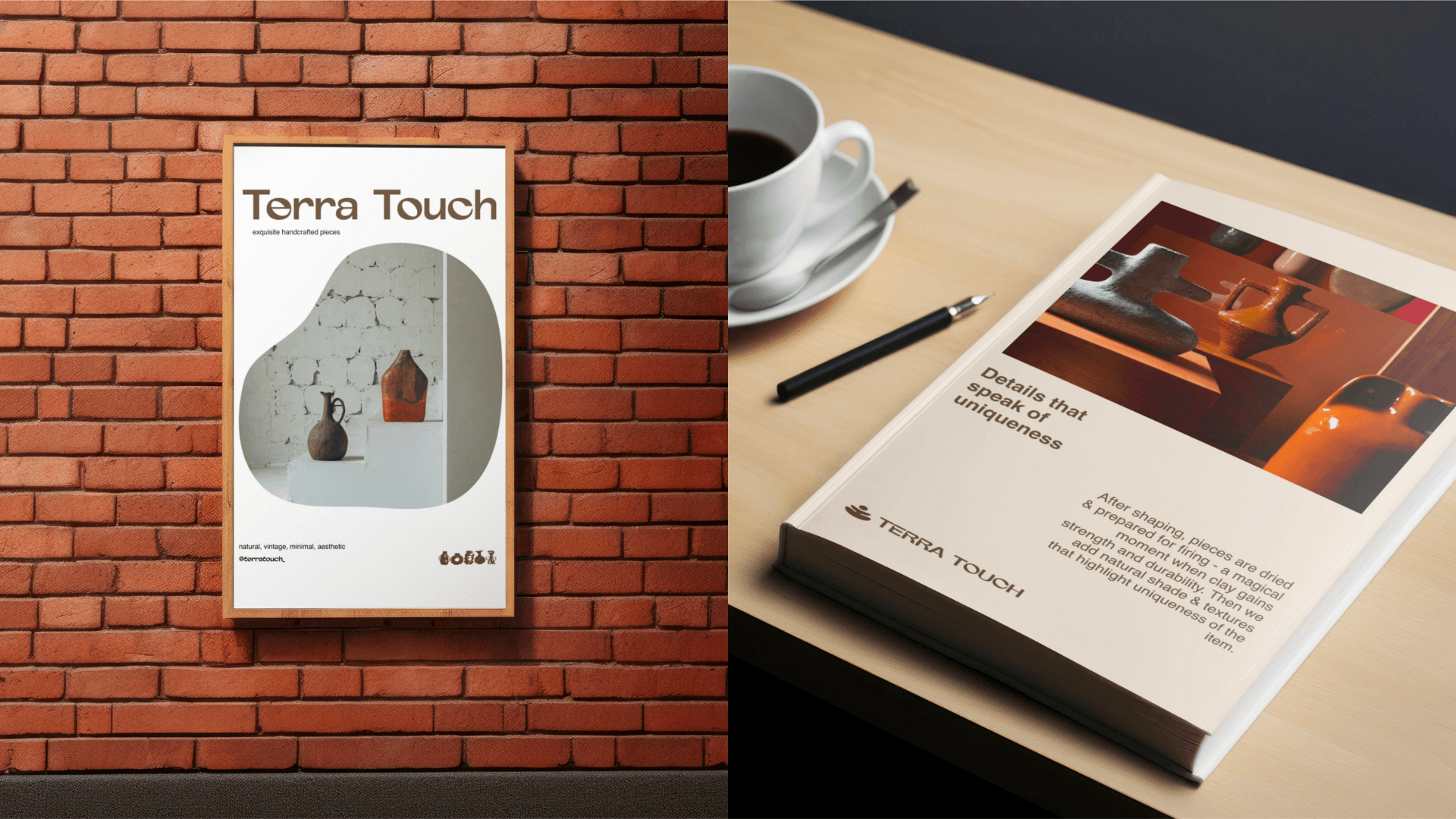 The goal of the created identity was to communicate Terra Touch’s philosophy in an authentic way and increase recognition in the marketplace. The color palette and atelier font reflect the founder’s sensitive nature and attention to detail, graphic elements create a direct association with physical products and emphasize the high craftsmanship of the artisans. Consistency in visual style and media design builds a strong connection with new customers. The overall design aimed to evoke a sense of nostalgia and timeless elegance, while maintaining a modern and approachable feel.